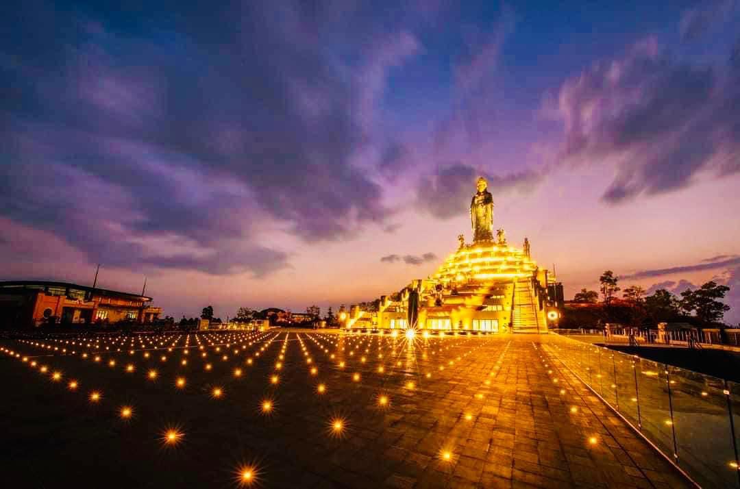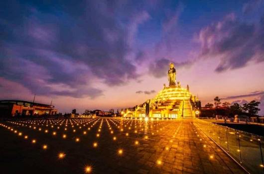 Tượng Phật Núi Bà Đen Tây Ninh cùng với mây xung quanh lúc ẩn lúc hiện.